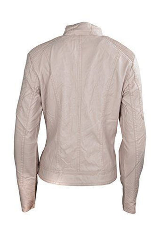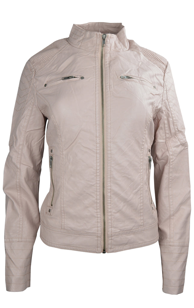 Womens Faux Leather Plain Zip Up Ladies Jacket with Stitching Detail