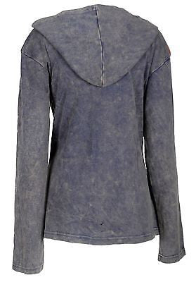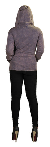 Ladies Multicolored Stone Washed Cotton Cardigan with attach Hood and Flower Embroidery