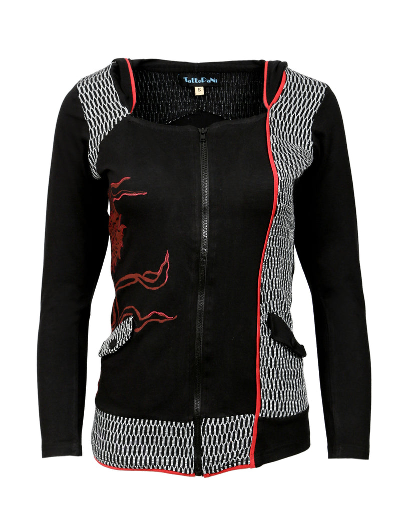 Ladies Black Slim Fit Long Sleeve Sinker Jacket with Side Embroidery
