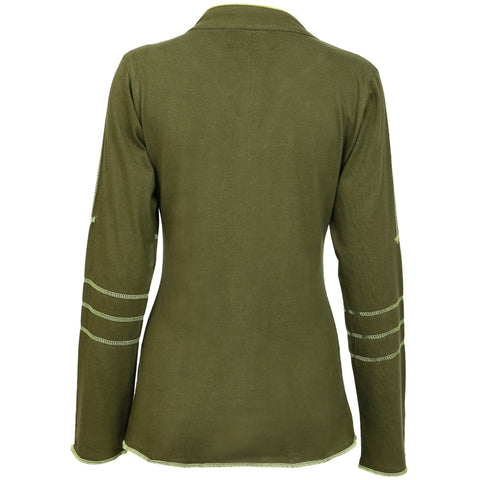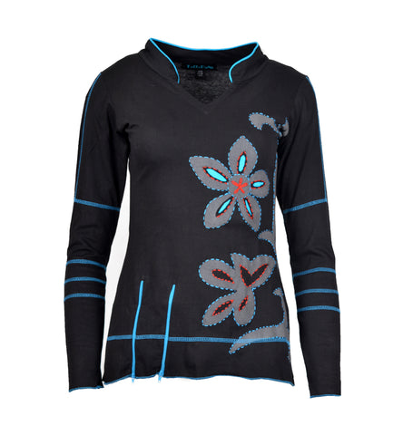 Full Sleeve Top with Chinese Collar design, with embroidery work in the front. Suitable for all seasons