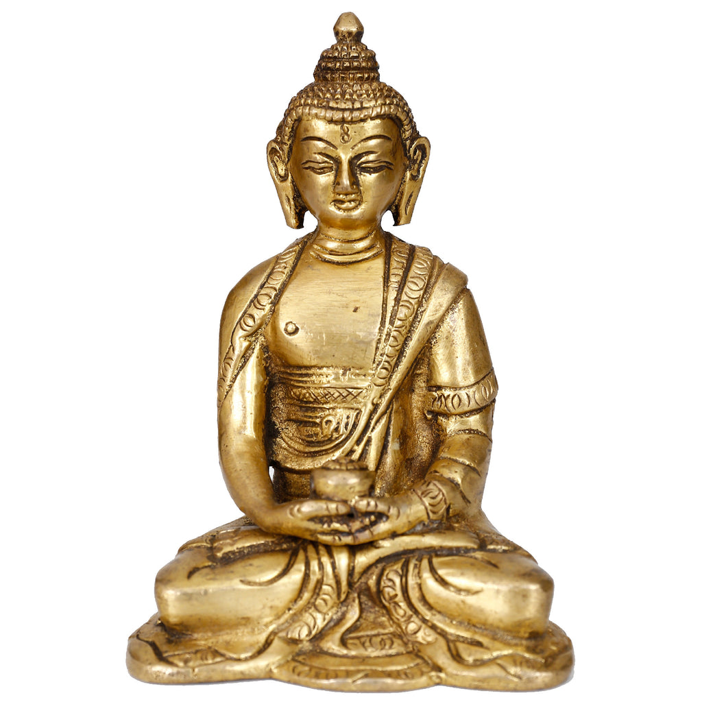 Lord Buddha Sitting Meditating Sculpture Statue. Beautifully Hand Crafted with Bass Material .In this pose, the Buddha is depicted with both hands in the lap, face up, and the legs are crossed, in a Double Lotus pose (with the ankles of each leg tucked behind one another in a locked position)