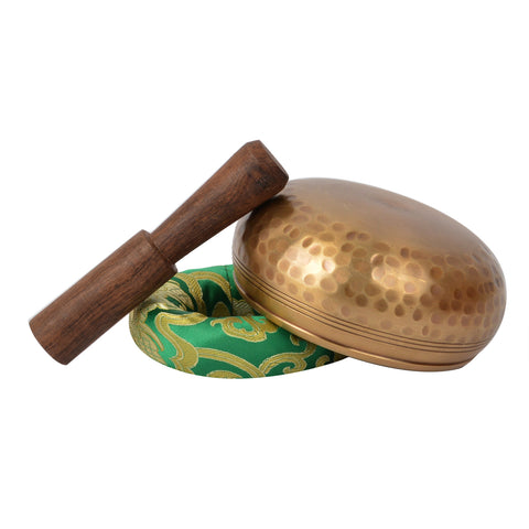 Meditation Singing Bowl with Local Itching & protective bag.Singing Bowls are one of the ancient Tibetan meditation tools. Magical Sound of Tibetan Signing Bowl Rich Tones, Rich Vibes. The vibrations of the singing bowls have the same wavelength found in the brainwaves that produce feelings of relaxation. The pure sounds produced when the Wooden rim is rubbed by the mallet is said to put the brain relaxed. This unique set features a beautifully designed (and toned) singing bowl, carved wooden mallet, bowl cushion and matching protective pouch!. To Play Singing Bowl-place the singing bowl on your palm and make less contact with your skin as possible, let the bowl sit freely . Gently go around the wooden rim on around outside of the singing bowl around the edge, keep little pressure on stick while going around the bowl.