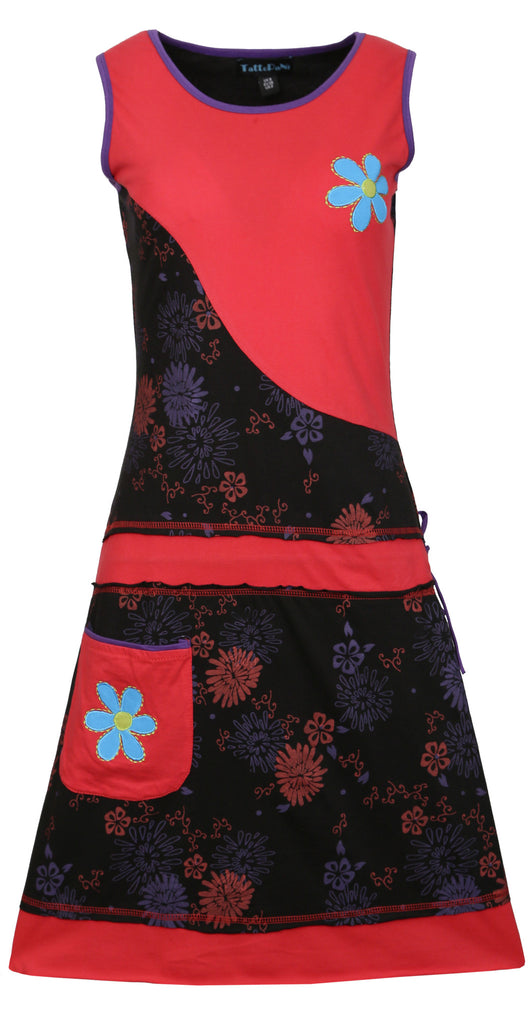 Women's Summer Sleeveless Dress with Flower Pattern Print .Suitable for all season .Soft Cotton Material Evening dress summer dress with Embroidery and Patch