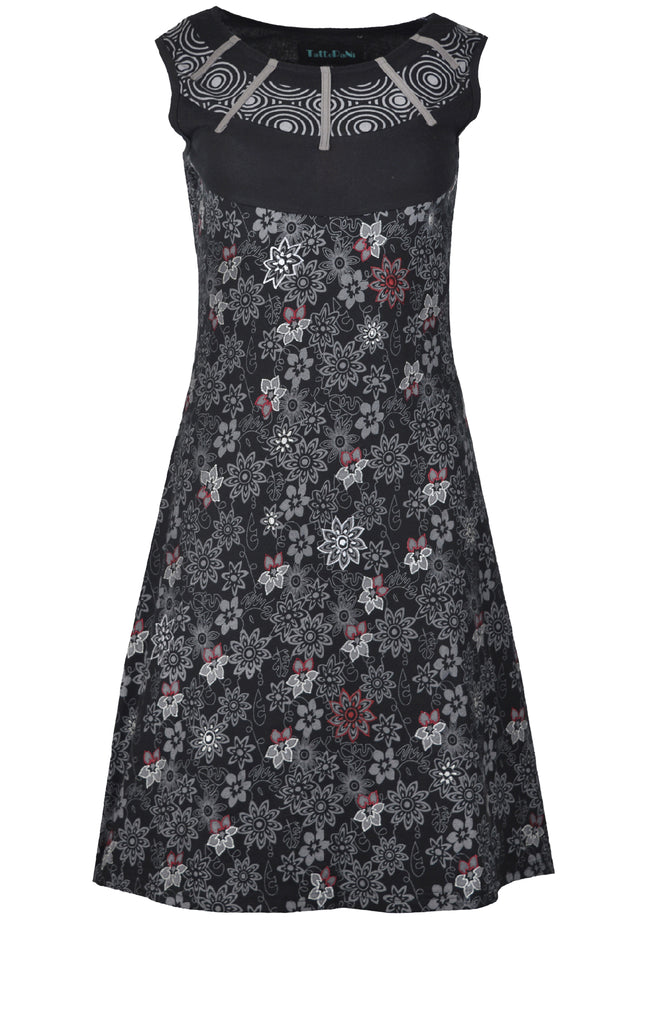 Ladies sleeveless dress with flower print and multi-color embroidery. Beautiful Tattopani black dress with grey flower print. Soft and comfortable cotton dress for summer or holidays. Perfect for the beach day as an evening wear. Pair up with the flipflops, heels, wedge or boots. Enhance the style just simply by adding different accessories with this dress. Style it as you prefer!!!