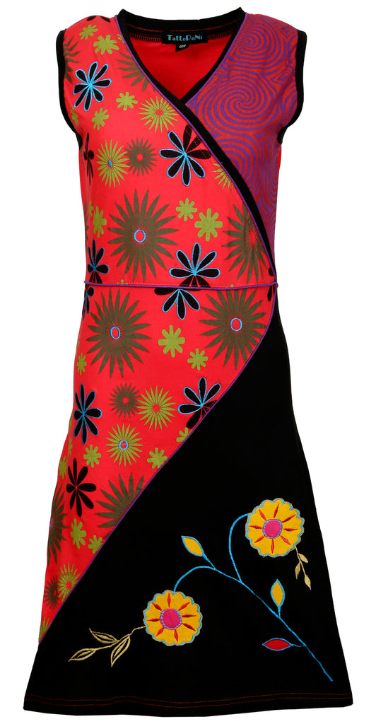 Ladies sleeveless dress with floral pattern and side flower patches. Pair up with the flats, heels or boots. Perfect for the beach day or as an evening wear. Enhance the style just simply by adding different accessories with this dress. Style it as you prefer!!!