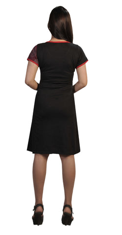 Women's summer short sleeved dress with multicolored pattern print & patch. Suitable for all season. Soft cotton material. Evening dress summer dress. Hand embroidery and stitch