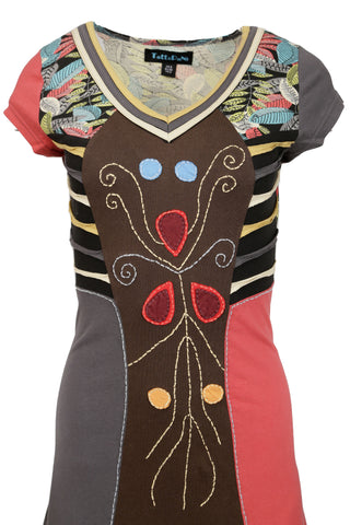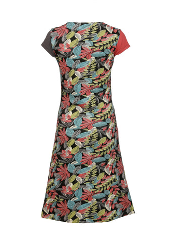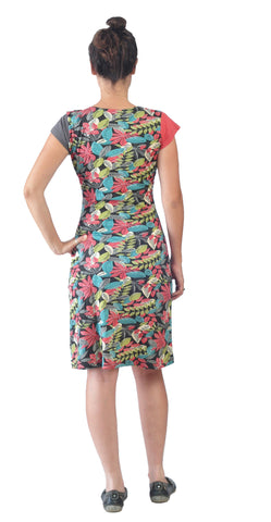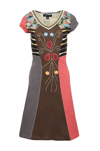 Ladies Short Sleeved Multicolored Dress With Leaves Pattern Print & Embroidery . Suitable for all season . Evening dress summer dress .Hand Embroidery and Stitch