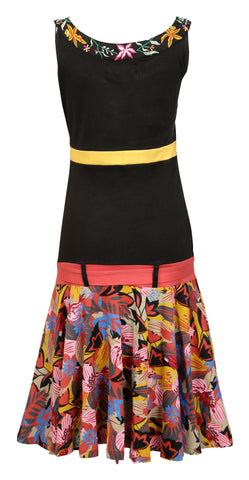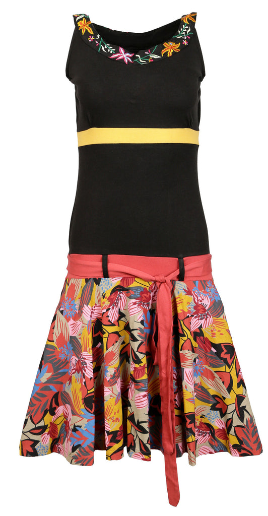 Ladies Summer Sleeveless Dress with Colorful Flower Pattern Print. Suitable for all season . Evening dress summer dress .Hand Embroidery and Stitch. Pair up with the flats, heels or boots. Perfect for the beach day or as an evening wear. Enhance the style just simply by adding different accessories with this dress. Style it as you prefer!!