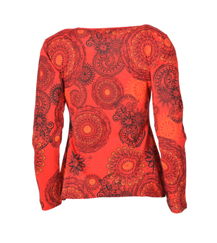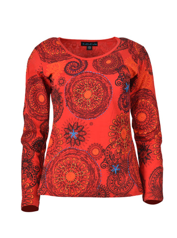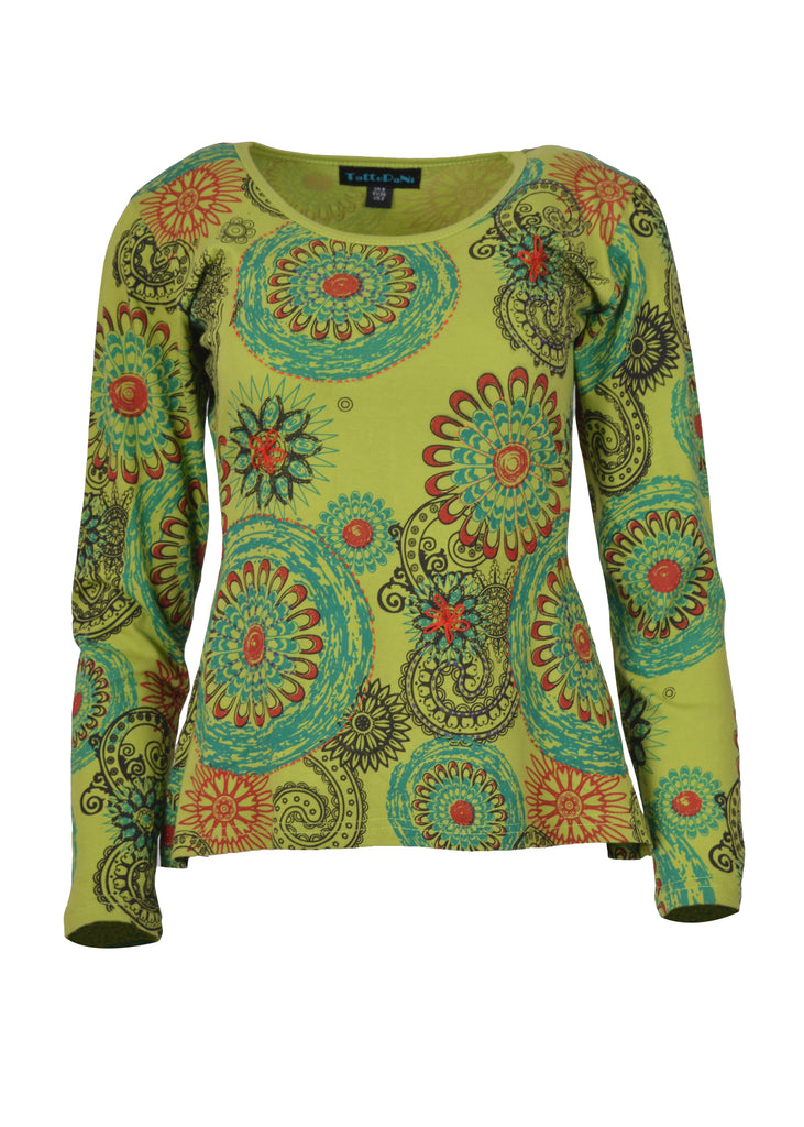 Tattopani women's long sleeve 100% cotton tops. All over floral print round neck t-shirt. Soft and comfortable to wear.