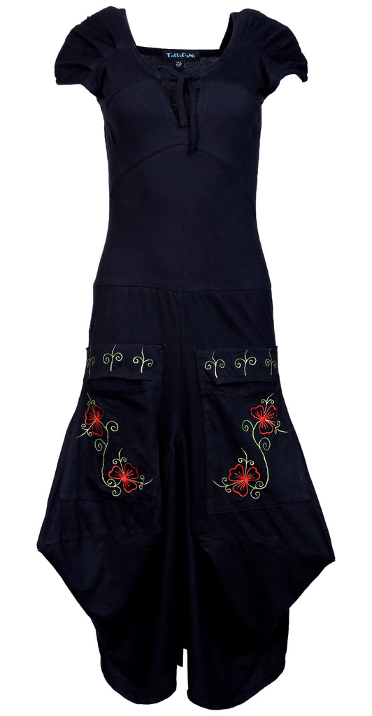 Ladies Short Sleeved Calf Length Dress with Flower Embroidery Printed on Pockets. Suitable for all season. Stretchable fabric to fit with body shape. Hand embroidery and stitch. Pair up with the flats, heels or boots. Perfect for the beach day or as an evening wear. Enhance the style just simply by adding different accessories with this dress. Style it as you prefer!!
