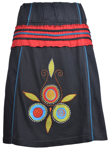 Ladies Cotton Mini skirt with an elasticated waist and Colorful Flower Embroidery. Comfortable and Easy to Wear and Unique Design.