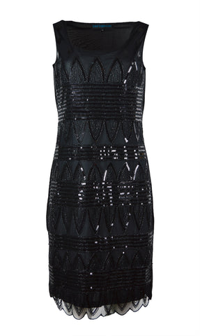 Ladies Sleeveless black party dress with sequins. Stylish eye catching dress perfect for social gathering, celebration or parties, pair it with high heels, wedge heels or simply with ballerina flats and be a fashionista among all.