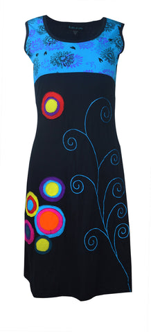 Spiral Embroidered and Patched Summer Sleeveless Dress.Stretchable cotton. Pair up with the flats, heels or boots. Perfect for the beach day or as an evening wear. Enhance the style just simply by adding different accessories with this dress. Style it as you prefer!!!