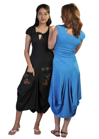 Ladies Short Sleeved Calf Length Dress with Flower Embroidery Printed on Pockets. Suitable for all season. Stretchable fabric to fit with body shape. Hand embroidery and stitch. Pair up with the flats, heels or boots. Perfect for the beach day or as an evening wear. Enhance the style just simply by adding different accessories with this dress. Style it as you prefer!!