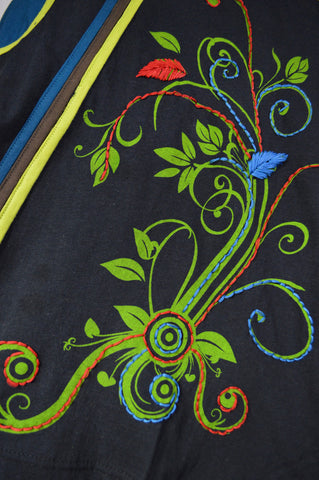 MULTICOLORED SLEEVELESS DRESS FOR LADIES WITH EMBROIDERY AND PATCH DESIGN. SUITABLE FOR SUMMER. STRETCHABLE COTTON