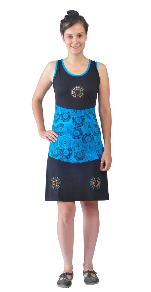 Women's Summer Sleeveless Dress with Multicolored Pattern Print & Patch .Suitable for all season .Soft Cotton Material Evening dress summer dress .Hand Embroidery and Stitch