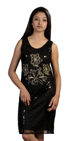 Women's Sleeveless black party dress with sequins. Stylish eye catching dress perfect for social gathering, celebration or parties, pair it with high heels, wedge heels or simply with ballerina flats and be a fashionista among all.