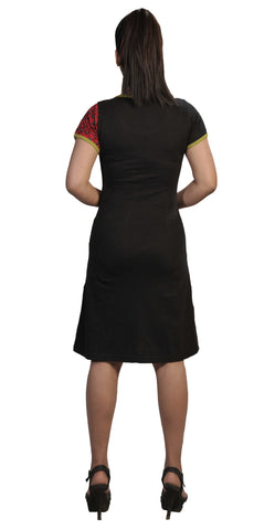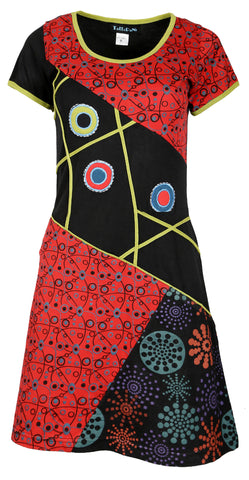 Women's Summer Short Sleeve Dress with Multicolored Pattern Print & Patch .Suitable for all season .Soft Cotton Material Evening dress summer dress .Hand Embroidery and Stitch