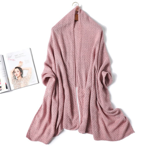 2020 Winter Scarf Women Solid Cashmere Knitted Pashmina Thick Shawls Lady Wraps Female Warm Foulard Neck Scarves Tow Side