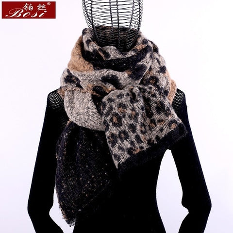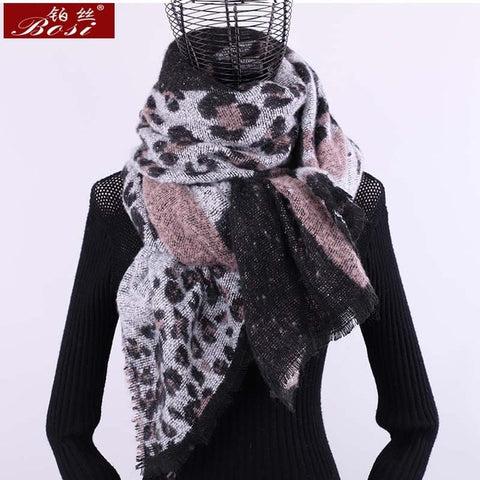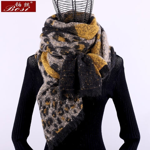 Cashmere Scarf Leopard plaid print Winter fashion For Women tassel Shawl Plaid long Scarves Brand oversize wool wraps pashmina