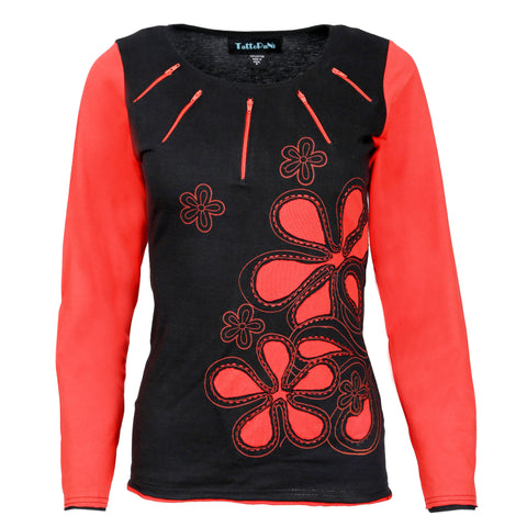 Women Full Sleeved Tops with flower Embroidery and patch. Suitable for All Season, Comfortable and Soft Cotton Material.
