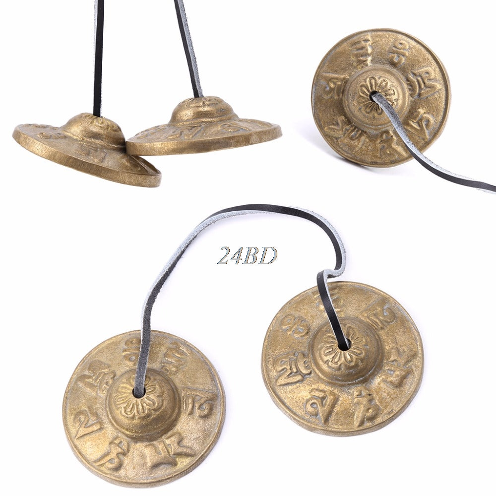 Handcrafted Tibetan Meditation Tingsha Cymbal Bell with Buddhist Lucky Symbols A20