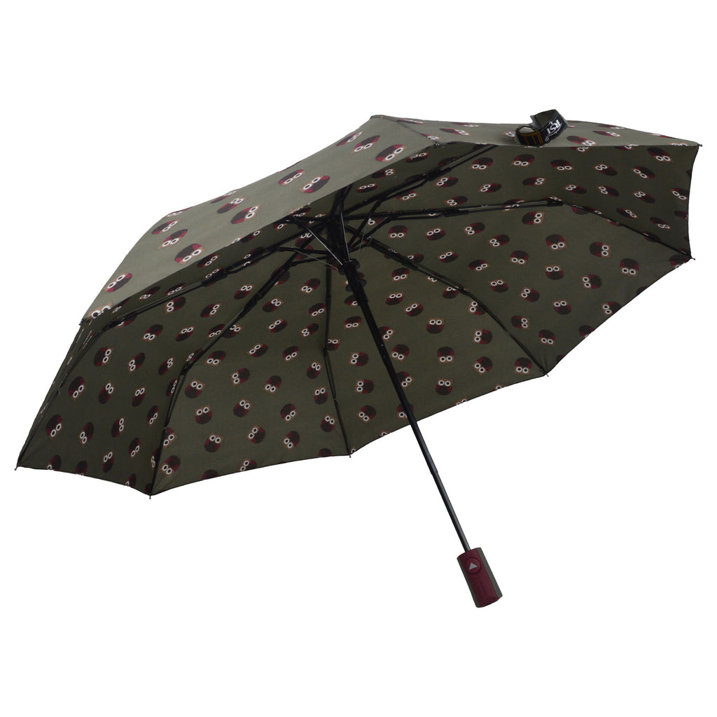 Umbrella with automatic opening & colorful owl pattern. Umbrella with automatic opening, strong & durable. For ladies.Strong aluminium center pole and durable ribs withstand high winds and prevent the umbrella from flipping inside out.