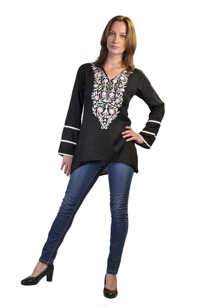 Ladies cotton long sleeve dress with aari neck design. Beautiful Tattopani dress with front flower print and aari neck design. Soft and comfortable cotton dress for summer or holidays. Perfect for the beach day as an evening wear. Pair up with the flipflops, heels, wedge or boots. Enhance the style just simply by adding different accessories with this dress. Style it as you prefer!!!