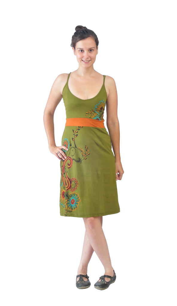Colorful floral embroidered Green tunic strap dress. Good to go as a casual wear for a beach day or as an evening wear. Pair them with the flats, flip flops or heels, style as you prefer.