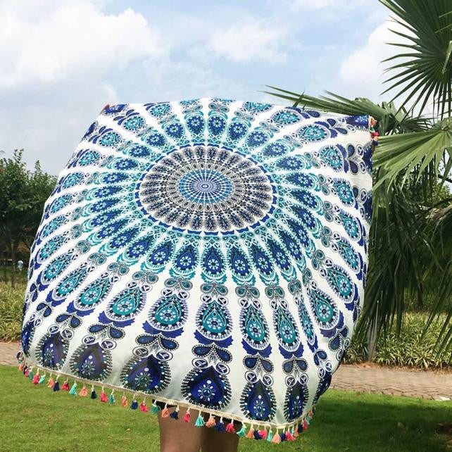 Round Hippie Tassel Tapestry Beach Throw Mandala Towel Yoga Mat Bohemian