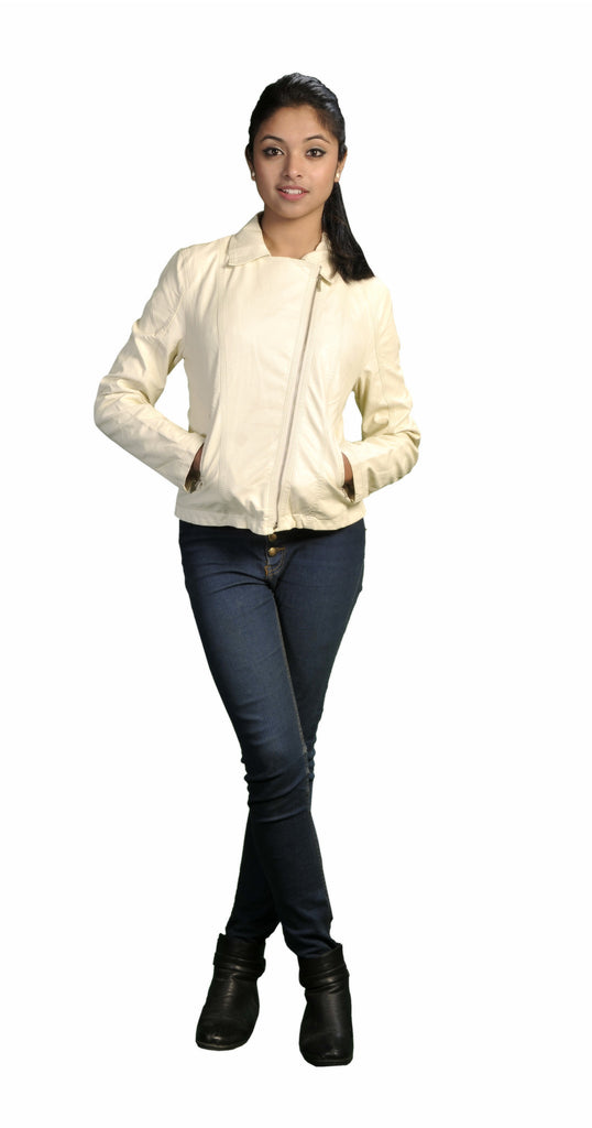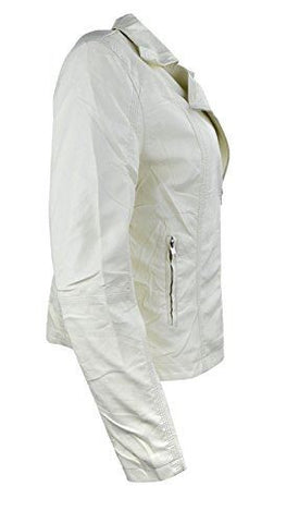 Women's Faux Leather Plain Zip Up Ladies Jacket with Stitching Detail