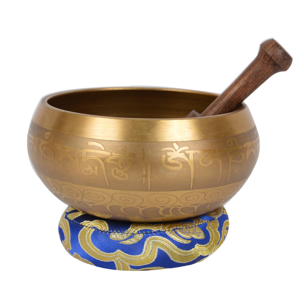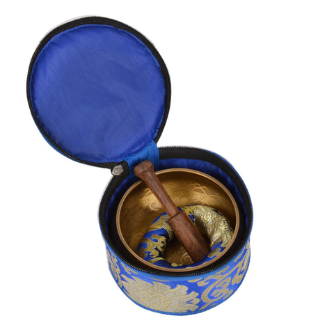 Singing Bowls are one of the ancient Tibetan meditation tools. Magical Sound of Tibetan Signing Bowl Rich Tones, Rich Vibes. The vibrations of the singing bowls have the same wavelength found in the brainwaves that produce feelings of relaxation. The pure sounds produced when the Wooden rim is rubbed by the mallet is said to put the brain relaxed. This unique set features a beautifully designed (and toned) singing bowl, carved wooden mallet, bowl cushion and matching protective pouch!. To Play Singing Bowl-place the singing bowl on your palm and make less contact with your skin as possible, let the bowl sit freely . Gently go around the wooden rim on around outside of the singing bowl around the edge, keep little pressure on stick while going around the bowl.
